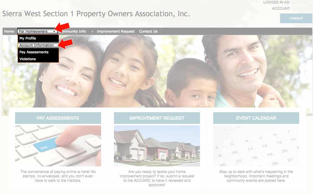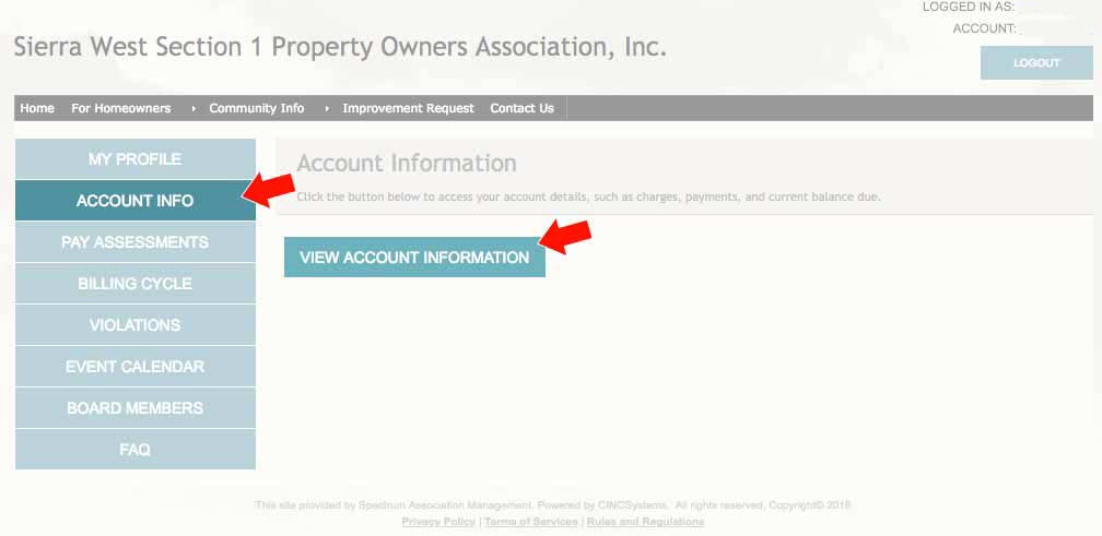 If not on the home screen, click the ACCOUNT INFORMATION sidebar link: