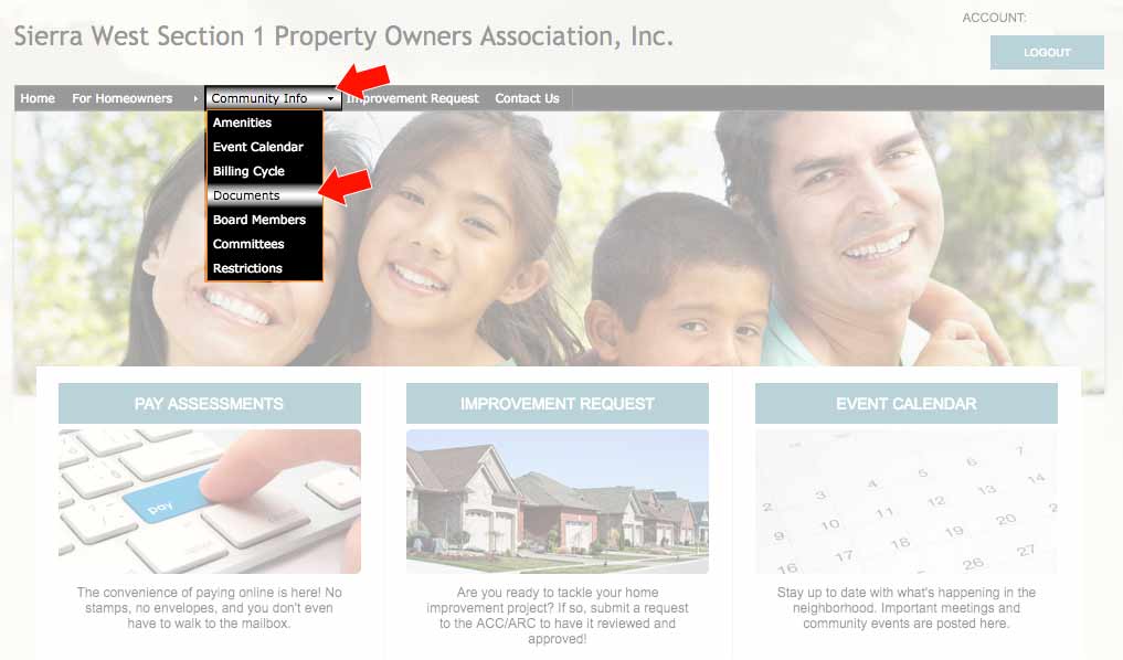 Once logged in to Spectrum, select "Documents" under the COMMUNITY INFO tab: