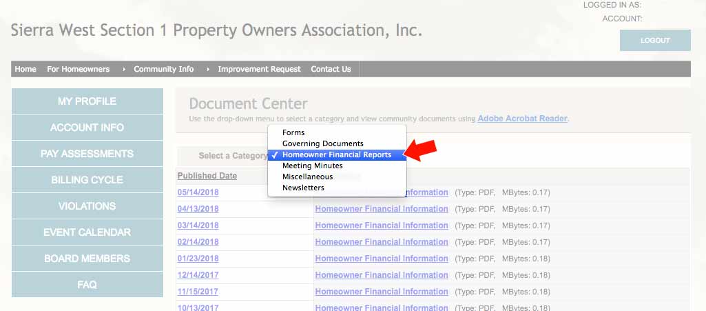 Then select "Homeowner Financial Reports" in the CATEGORY menu: